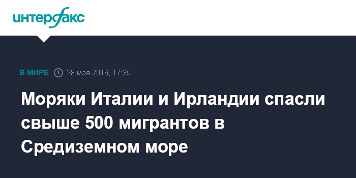 Москва. 28 мая. INTERFAX.RU - Корабли береговой охраны Италии при поддержке патрульного корабля Ирландии в субботу спасли более 500 иммигрантов, которые пытались добраться до ЕС через Средиземное море на лодках контрабандистов, сообщает агентство Associated Press.