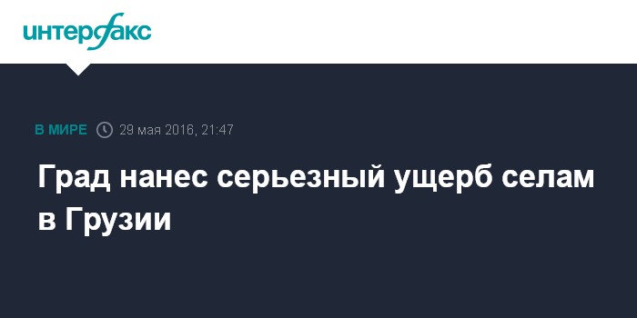 Москва. 29 мая. INTERFAX.RU - Сильный град и проливной дождь со шквальным ветром, обрушившиеся в воскресенье на Адигенский район в регионе Самцхе-Джавахети (Южная Грузия), нанесли значительный ущерб нескольким селам, уничтожив урожай.
