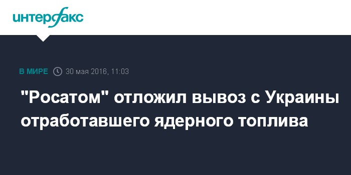 Москва. 30 мая. INTERFAX.RU - ГК "Росатом" отложил вывоз первой в этом году партии отработанного ядерного топлива (ОЯТ) с Украины из-за проблем с платежами, сообщил журналистам директор по госкополитике в сфере обращения с РАО ОЯТ госкорпорации Олег Крюков.