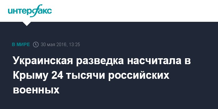 Москва. 30 мая. INTERFAX.RU - На территории Крыма присутствуют 24 тысячи российских военнослужащих, сообщил представитель главного управления разведки Минобороны Украины Вадим Скибицкий.