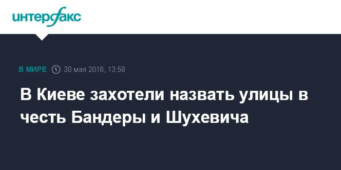 Москва. 30 мая. INTERFAX.RU - В Киеве были проведены общественные обсуждения переименования улиц города, по результатам которых два проспекта могут получить имена лидеров ОУН Степана Бандеры и Романа Шухевича, утверждает глава Института национальной памяти Владимир Вятрович.
