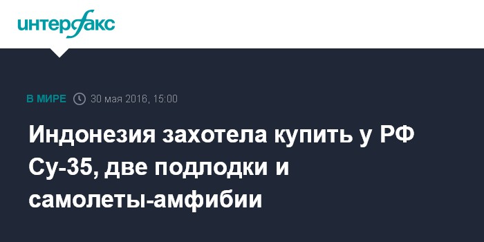 Москва. 30 мая. INTERFAX.RU - Москва и Джакарта ведут переговоры по поставке самолетов Су-35 и субмарин, заявил посол Индонезии в РФ Вахид Суприяди.