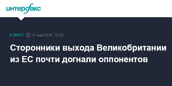 Москва. 31 мая. INTERFAX.RU - Разрыв между сторонниками и противниками выхода Великобритании из состава Европейского союза (Brexit) сократился, пишет The Telegraph.