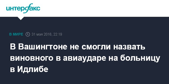 Москва. 31 мая. INTERFAX.RU - США не располагают данными о том, кто стоит за авиаударом по больнице в сирийском Идлибе, в результате которого погибли гражданские лица.