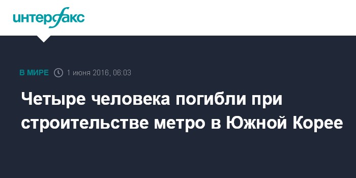 Москва. 1 июня. INTERFAX.RU - Не менее четырех человек погибли, еще 10 получили ранения в результате взрыва на стройке метро в Южной Корее недалеко от столицы страны, сообщило в среду агентство Associated Press.