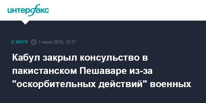 Москва. 1 июня. INTERFAX.RU - Консульство Афганистана в северном пакистанском городе Пешавар закрылось в минувший вторник.