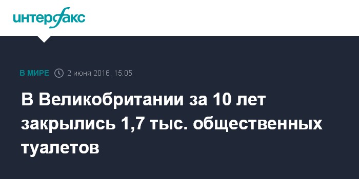 Москва. 2 июня. INTERFAX.RU - Количество финансируемых из муниципальных средств общественных туалетов в Великобритании в последние годы неуклонно сокращается, пишет The Times.
