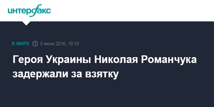 Москва. 3 июня. INTERFAX.RU - Следователи Следственного управления военной прокуратуры Южного региона задержали первого заместителя главы Николаевской областной государственной администрации, Героя Украины Николая Романчука за получение взятки в $100 тыс., сообщила военная прокуратура.