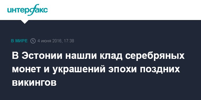Москва. 4 июня. INTERFAX.RU - В Эстонии в Вильяндиском (Viljandi) уезде обнаружен серебряный клад из монет и украшений предположительно конца XI века.