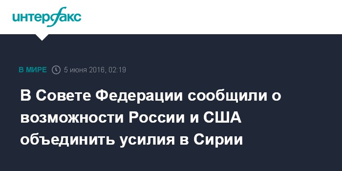 В Совете Федерации сообщили о возможности России и США объединить усилия в Сирии