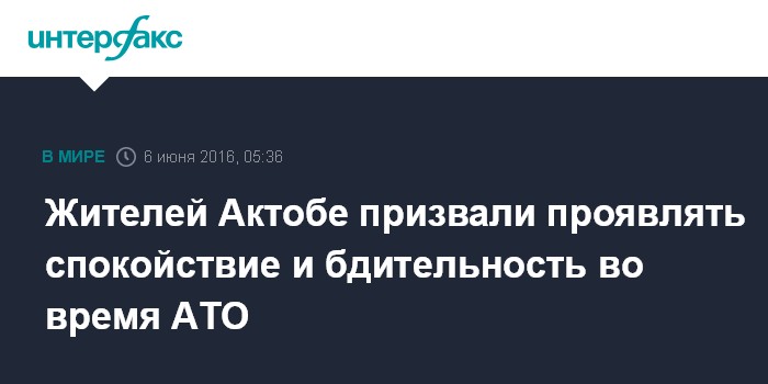 Москва. 6 июня. INTERFAX.RU - Аким Актюбинской области Казахстана, где объявлен режим антитеррористической операции, Бердибек Сапарбаев обратился к жителям региона с просьбой проявлять бдительность.