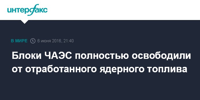 Москва. 6 июня. INTERFAX.RU - В понедельник, 6 июня, была завершена выгрузка отработанного ядерного топлива из энергоблока №1 Чернобыльской атомной электростанции, заявил министр экологии и природных ресурсов Украины Остап Семерак.