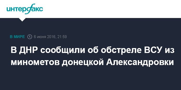 Москва. 6 июня. INTERFAX.RU - Украинские военные обстреляли поселок Александровка в самопровозглашенной Донецкой народной республике, один мирный житель погиб.