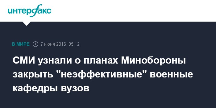 В свою очередь, первый зампред комитета Госдумы по обороне Сергей Жигарев подтвердил планы Минобороны и рассказал "Известиям", что список вузов, которые лишатся военных кафедр, будет утвержден в ближайшее время. Но уже точно известно, что в него попадут высшие учебные заведения, выпускающие специалистов, невостребованных в армии.