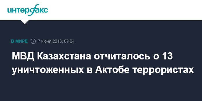 МВД Казахстана отчиталось о 13 уничтоженных в Актобе террористах