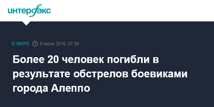 Более 20 человек погибли в результате обстрелов боевиками города Алеппо