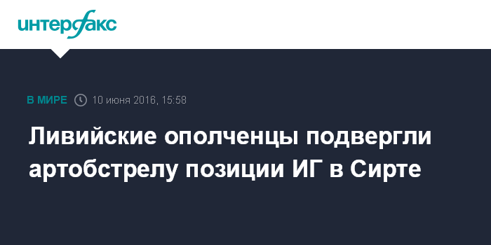 Москва. 10 июня. INTERFAX.RU - Бойцы подразделений, поддерживающих правительство национального единства Ливии, в пятницу начали артобстрел позиций террористической группировки ИГ (запрещена в РФ) в городе Сирт, сообщают западные СМИ.