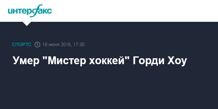 Москва. 10 июня. INTERFAX.RU - Канадский хоккеист Горди Хоу скончался в возрасте 88 лет в США, сообщает официальный твиттер клуба Национальной хоккейной лиги "Детройт".