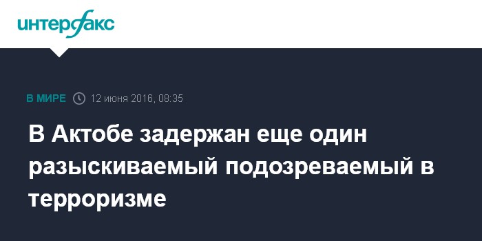 Москва. 12 июня. INTERFAX.RU - В Актобе задержан еще один разыскиваемый террорист, сообщили в Комитете национальной безопасности (КНБ) Казахстана.