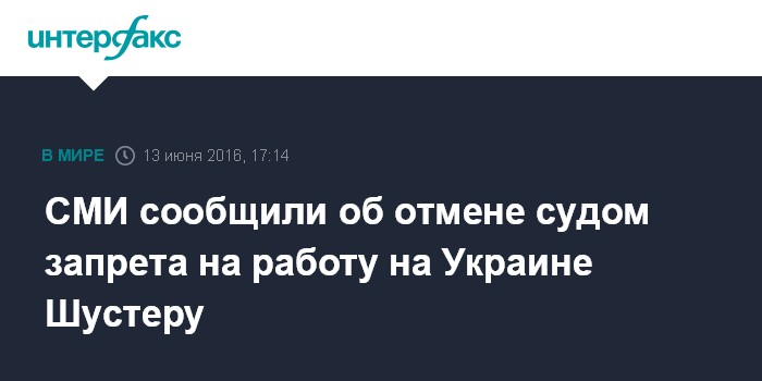 Москва. 13 июня. INTERFAX.RU - Окружной административный суд города Киева отменил решение Киевского городского центра занятости об аннулировании разрешения на трудоустройство на Украине автору и ведущему ток-шоу "Шустер Live" Савику Шустеру, сообщает телеканал "112.Украина".