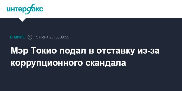 Москва. 15 июня. INTERFAX.RU - Мэр японской столицы Токио Еити Масудзоэ направил среду в законодательную ассамблею префектуры Токио прошение об отставке в связи с обвинениями в нецелевом расходовании общественных средств, сообщает японский телеканал NHK.