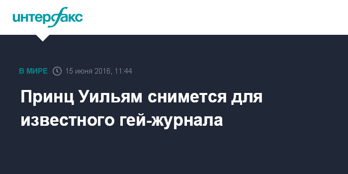 Москва. 15 июня. INTERFAX.RU - Принц Уильям появится в ведущем британском журнале для геев Attitude, сообщают местные СМИ.