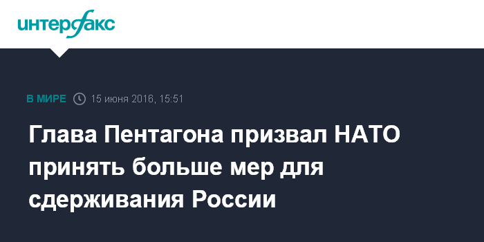 Москва. 15 июня. INTERFAX.RU - НАТО должна сделать еще больше для сдерживания России, заявил министр обороны США Эштон Картер.