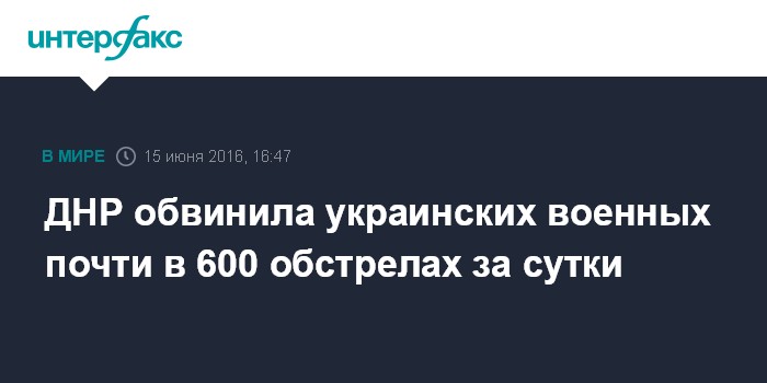 Москва. 15 июня. INTERFAX.RU - В самопровозглашенной Донецкой народной республике обвинили украинскую армию в сотнях новых обстрелов, в том числе из БМП и гранатометов.
