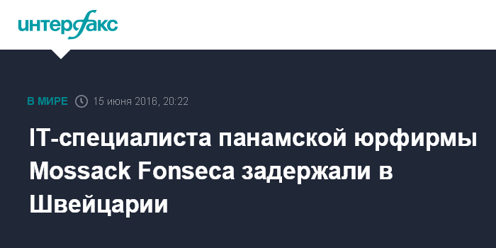 Москва. 15 июня. INTERFAX.RU - В Швейцарии задержали специалиста IT-службы панамской юридической фирмы Mossack Fonseca, работавшего в женевском офисе компании, сообщает в среду швейцарская газета Temps.