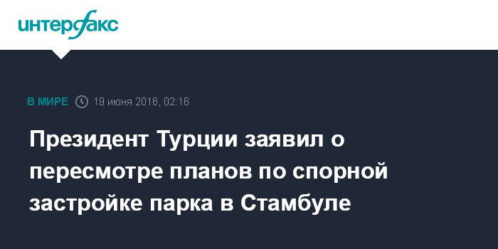 Президент Турции заявил о пересмотре планов по спорной застройке парка в Стамбуле