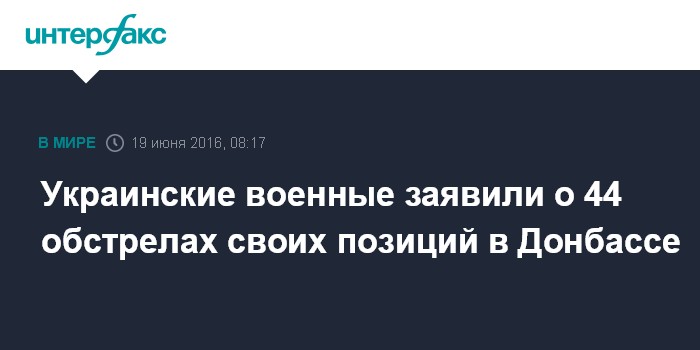 Москва. 19 июня. INTERFAX.RU - Позиции украинских военных в Донбассе за прошедшие сутки были обстреляны 44 раза, в том числе с применением минометов, танков и САУ, сообщает пресс-центр штаба силовой операции в Facebook.