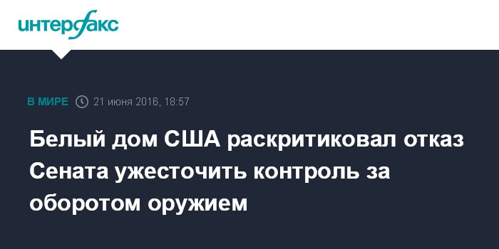 Москва. 21 июня. INTERFAX.RU - В американском Белом доме убеждены, что недавнее голосование Сената по поправкам к законодательству в сфере оборота оружия было "позорной демонстрацией трусости", сообщает ABC News.