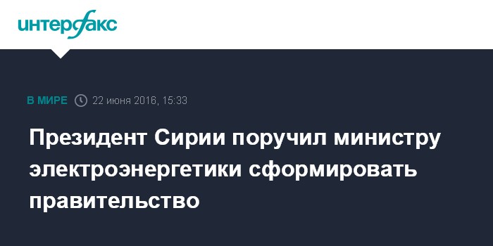 Москва. 22 июня. INTERFAX.RU - Президент Сирии Башар Асад поручил Имаду Хамису сформировать новое правительство страны, сообщают в среду официальные сирийские СМИ.
