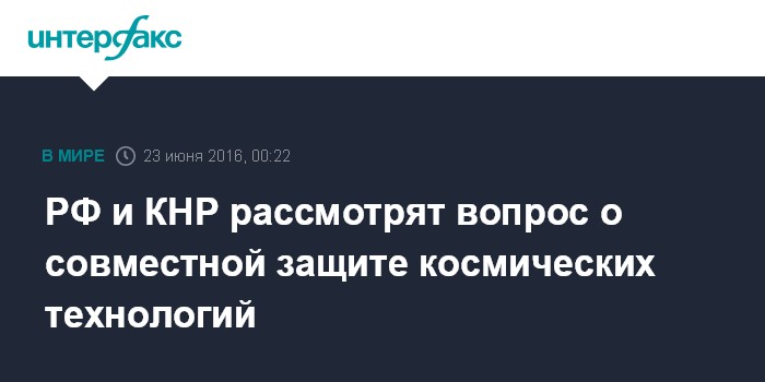 РФ и КНР рассмотрят вопрос о совместной защите космических технологий