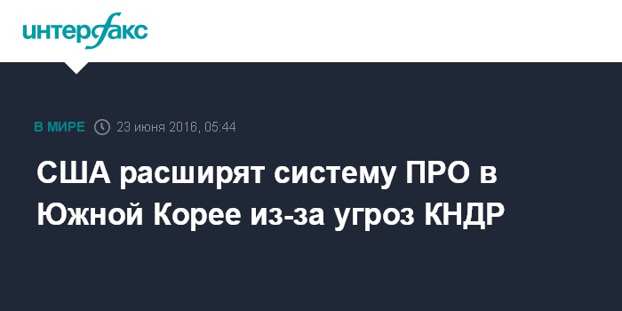 Москва. 23 июня. INTERFAX.RU - Для того, чтобы обеспечить противоракетную оборону Южной Кореи от угроз со стороны КНДР, США планируют продолжить расширять сеть ПРО на южнокорейской территории, заявил американский министр обороны США Эштон Картер.