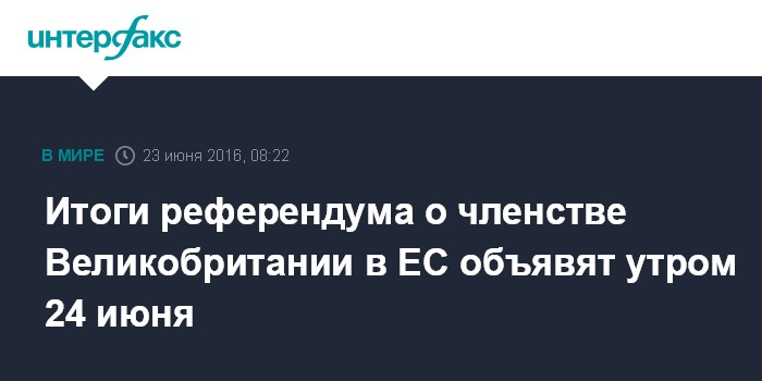 Итоги референдума о членстве Великобритании в ЕС объявят утром 24 июня