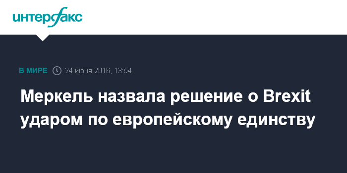 Москва. 24 июня. INTERFAX.RU - Решение британцев выйти из ЕС ударило по европейскому единству и теперь из него предстоит извлечь уроки, заявила в пятницу канцлер ФРГ Ангела Меркель.