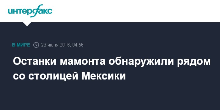 Москва. 26 июня. INTERFAX.RU - Мексиканские археологи сообщили о завершении раскопок окаменевших костей мамонта недалеко от Мехико. Как передает BBC, они были найдены в районе села Тультепек во время прокладки дренажных труб.