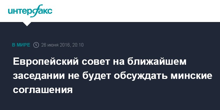 Москва. 26 июня. INTERFAX.RU - В официальном порядке не планируется обсуждать на Европейском совете 28-29 июня вопрос о минских соглашениях и России, заявил в воскресенье журналистам в Брюсселе высокопоставленный европейский чиновник на условиях анонимности.