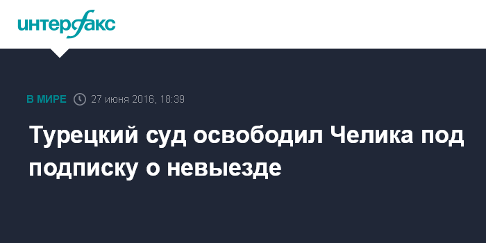 Турецкий суд освободил Челика под подписку о невыезде