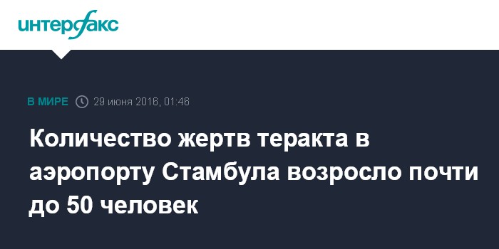 "Почти 50 человек стали жертвами теракта в главном аэропорту Стамбула", - говорится в сообщении.