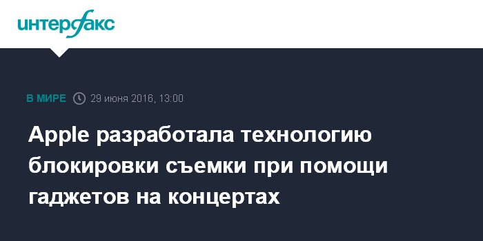 Москва. 29 июня. INTERFAX.RU - Apple получила патент на новую технологию, позволяющую блокировать запись фото и видео с телефона во время концертов, сообщает портал 9to5mac.