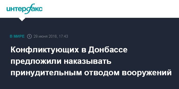 Москва. 29 июня. INTERFAX.RU - За нарушение перемирия в Донбассе предлагается ввести возможность принудительного отвода подразделений виновной стороны, сообщил "Интерфаксу" источник в подгруппе по безопасности.