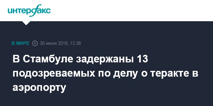Москва. 30 июня. INTERFAX.RU - Турецкие полицейские задержали в четверг 13 человек по подозрению в причастности к теракту в аэропорту Стамбула, сообщает интернет-портал турецкой газеты "Хюрриет".