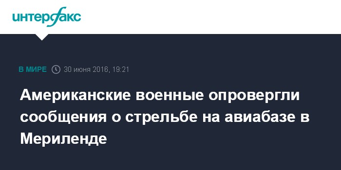 Москва. 30 июня. INTERFAX.RU - В ВВС США опровергли информацию о стрельбе на авиабазе Эндрюс в американском штате Мериленд, сообщает в четверг агентство The Associated Press.