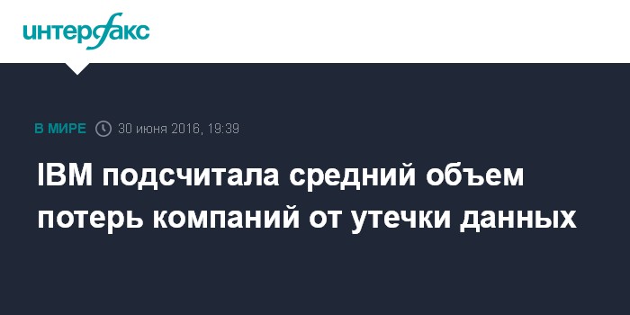 Москва. 30 июня. INTERFAX.RU - Средний объем потерь компаний от утечки данных вырос на 29% с 2013 года - до $4 млн, свидетельствуют результаты международного исследования Ponemon Institute при поддержке IBM Security.