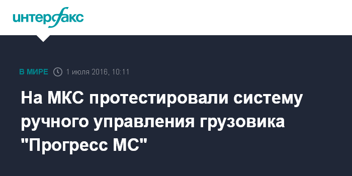 Москва. 1 июля. INTERFAX.RU - На транспортном грузовом корабле (ТГК) "Прогресс МС" успешно проведено тестирование усовершенствованной системы дистанционного ручного управления космических аппаратов - ТОРУ (телеоператорный режим управления), сообщает пресс-служба Российской космической корпорации "Энергия".