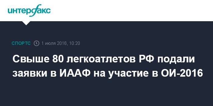 Москва. 1 июля. INTERFAX.RU - Международная легкоатлетическая ассоциация (ИААФ) получила более 80 заявок российских легкоатлетов на участие в Олимпийских играх в Рио-де-Жанейро, сообщили "Интерфаксу" в пресс-службе ИААФ.