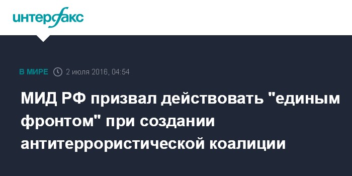 МИД РФ призвал действовать "единым фронтом" при создании антитеррористической коалиции