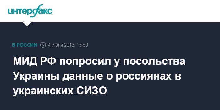 Москва. 4 июля. INTERFAX.RU - Российская сторона просит Киев предоставить данные о россиянах, отбывающих наказание на территории Украины, заявляют в МИД РФ.